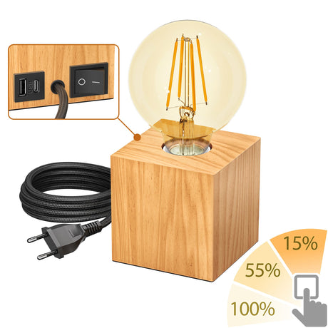 €59,95Eenheid prijs /Niet beschikbaarTafellamp hout met USB en stekker vierkant (zonder lamp)